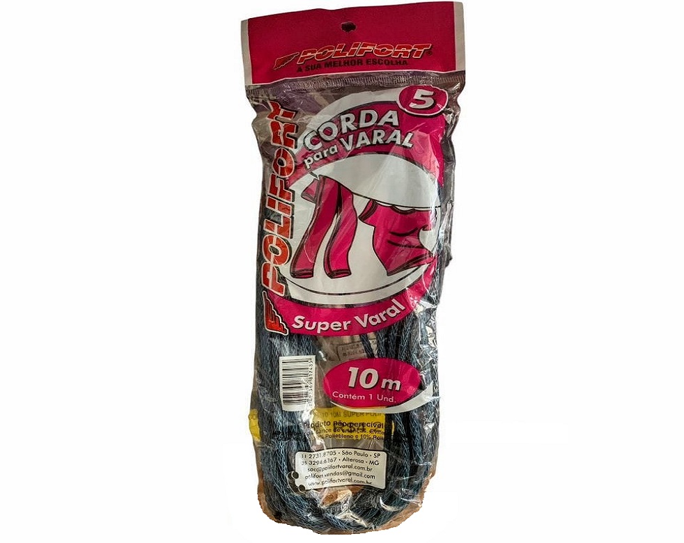 CORDA VARAL PLAST N5 10M SUPER Cordas são versáteis e possuem vários fios entrelaçados para garantir maior firmeza e suportar mais peso sobre ela. Comumente usada como varal de roupas. CÓDIGO DO PRODUTO: REF.: VN7485 EAN: 7897369817485