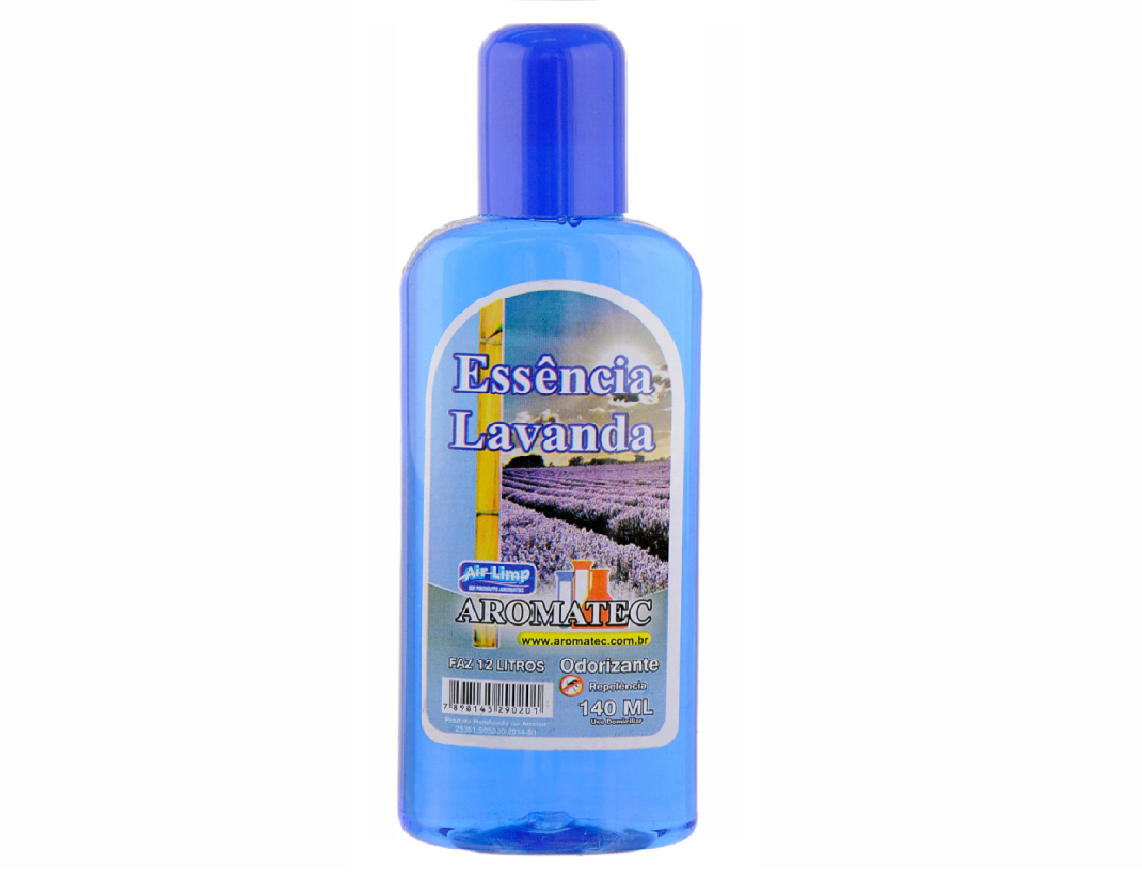 Essência Lavanda Aromatec 140 mL Óleos e essências AROMATEC possuem ingredientes extrídos diretamente da natureza. Elaborados sob alto controle de qualidade são embalados em recipientes seguros e econômicos. Para facilitar o uso doméstico, os óleos e essências produzidos pela AROMATEC possuem embalagens de 140ml. As diversas fragâncias são altamente concentradas oferecendo um ótimo desempenho mesmo quando diluidos em água. O óleo essencial de Lavanda é um dos mais utilizados na Aromaterapia, além de ser largamente empregado pela indústria de cosméticos. É produzido a partir da destilação das flores, folhas e o caule da planta Lavandula officinalis.