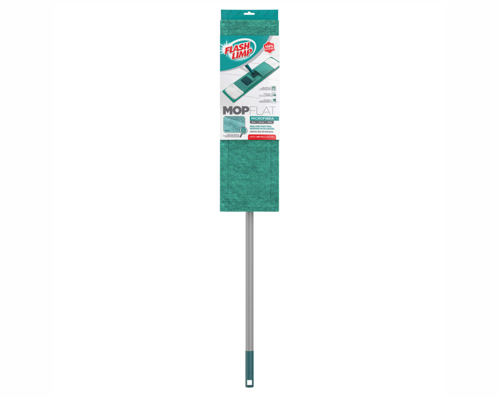 O Mop Flat Microfibra da FlashLimp é prático, durável e eficiente. Possui cabo telescópico em aço que ajusta-se para melhor desempenho (71,5 cm a 120 cm). Substitui a vassoura, o rodo e o pano de chão. Tem grande poder de absorção e pode ser usado em pisos frios, sintéticos ou amadeirados. Sua base flexível permite alcançar áreas de difícil acesso. Conteúdo: 1 Cabo telescópico 1 Refil de microfibra Peso: Mop - 340 g Medidas: Mop - 9 cm x 39 cm x 71,5 cm a 120 cm Refil - 9 cm x 39 cm x 2 cm Composição: Mop: Aço / PP Refil - Poliéster