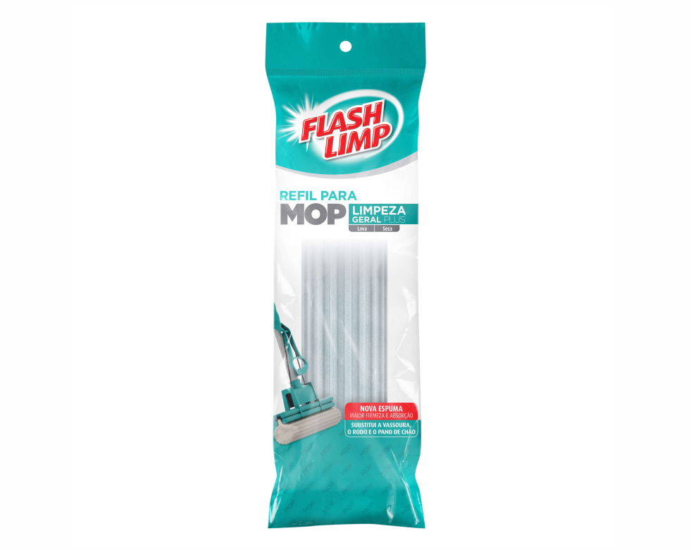 O refil do Mop Limpeza Geral da Flash Limp é higiênico e evita que você tenha contato com a sujeira. A sujeira sólida fica presa na parte externa do refil e se desprende facilmente no enxágue junto com a sujeira liquida. Conteúdo: 1 Refil com esponja em PVA Peso: 123 g Medidas: Refil - 6 cm x 27 cm x 6 cm Composição: PVA