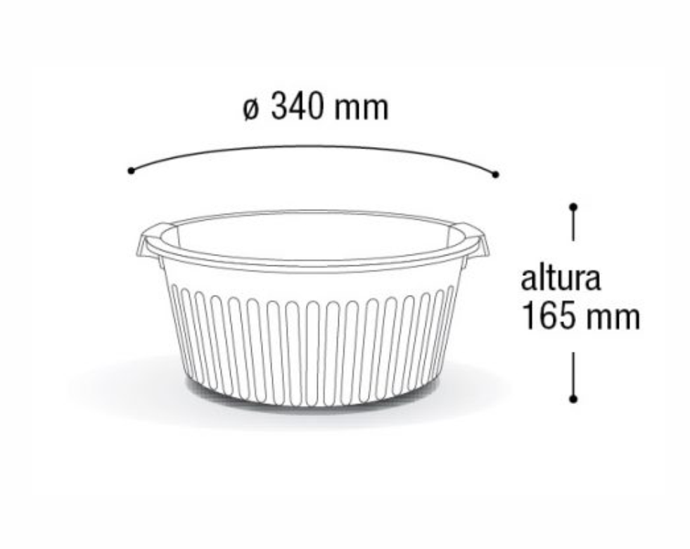 BACIA 12L CANELADA COLOR C/ ALÇA ARQPLAST CÓDIGO DO PRODUTO: REF.: BA12 EAN:7898919089048 DUN:17898919089045 MEDIDA DO PRODUTO: QUANTIDADE POR UNIDADE: 01 UNIDADE DIMENSÃO POR UNIDADE: 340 X 165MM (DIÂMETRO X ALTURA)